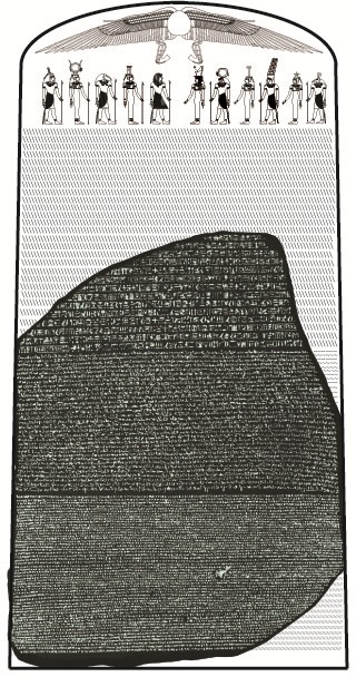 Hace unos pocos meses, los dos seres que conformamos esta sociedad tuvimos la brillante idea de escribir sobre la piedra de Rosetta. Nos parece una epopeya maravillosa digna de ser contada, mas quiso el azar que este año se cumplieran dos siglos del desciframiento de los primeros signos y durante estas últimas semanas hemos ido descubriendo, con cierta pena, como un montón de medios han ido sacando sus reportajes, algunos magníficos como el de la National. Con todo, y ya que nos lo hemos currado documentándonos por aquí y por allá, no vamos a desperdiciar el tiempo invertido en esta estupenda historia que, por otra parte, no es cosa que sobre, así que abordaremos el asunto con la desvergüenza que nos caracteriza. Esperamos que sea de vuestro agrado.
