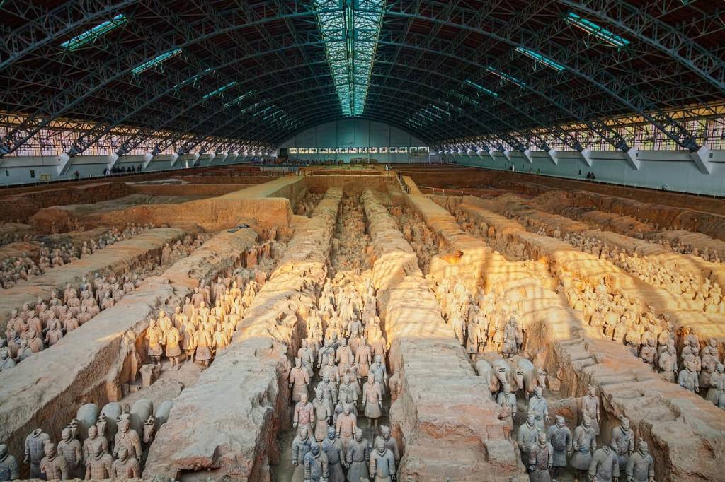 En 1974 un campesino encontró los restos de un soldado de arcilla mientras trabajaba la tierra en la provincia de Shaanxii. Como ya os podéis imaginar, este fue el primero de los miles de componentes del ejercito de terracota que guardaban (y guardan, porque siguen apareciendo más y más) el descanso eterno del emperador. Este enorme séquito es ya de por sí un hallazgo magnífico, pero queda mucho más por descubrir en Shaanxi, porque desde aquel instante el mausoleo del emperador continúa, todavía hoy, sin ser abierto.